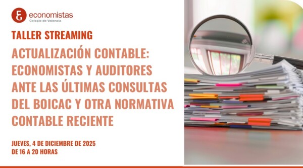 La Comisión de Contabilidad y Auditoría ha preparado un taller en streaming sobre las últimas consultas del Boletín Oficial del Instituto de Contabilidad y Auditoría (Boicac) y otra normativa contable reciente con Juan Luis Domínguez como ponente, Economista, Auditor de Cuentas y Profesor Titular de Economía Financiera y Contabilidad en la Universidad de Barcelona.