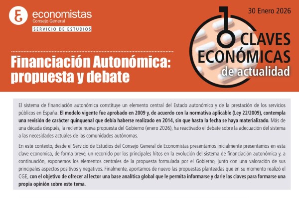 El Servicio de Estudios del Consejo General de Economistas ha publicado la Clave Económica de Actualidad, nº 64, en la que incluye una breve nota sobre la financiación autonómica.