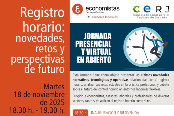 Economistas Asesores Laborales (EAL), órgano especializado en materia laboral del Consejo General de Economistas de España (CGE), ha organizado una jornada titulada ‘Registro Horario: novedades, retos y perspectivas de futuro‘.