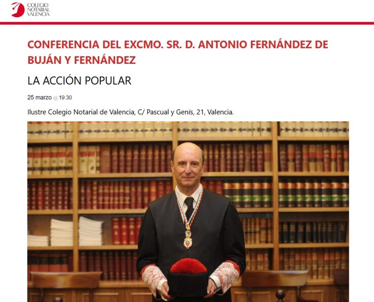 16 marzo 2026 El Ilustre Colegio Notarial de Valencia y la Cátedra de Derecho Notarial de la Universidad Católica de Valencia organizan la conferencia “La acción popular”