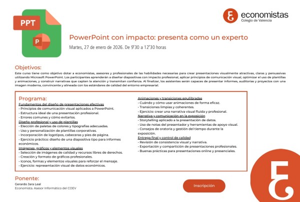 El COEV ha organizado un taller de Power Point para dotar de las habilidades necesarias para crear presentaciones visualmente atractivas, claras y persuasivas.