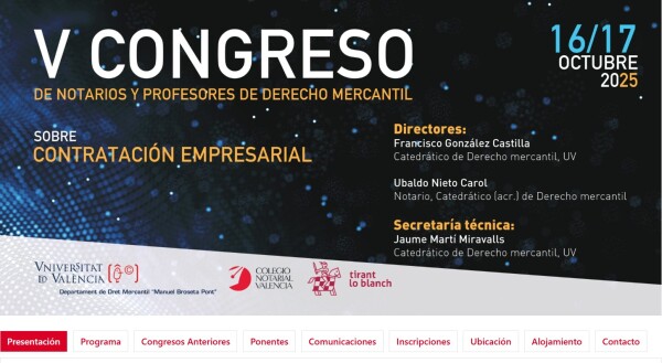 Los directores del Congreso son un año más el notario de Valencia y catedrático de Derecho Mercantil, Ubaldo Nieto Carol, y el catedrático de Derecho Mercantil de la UV, Francisco González Castilla.